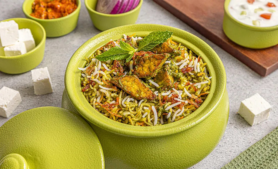 Fresh paneer, Basmati rice, Hyderabadi biryani masala.