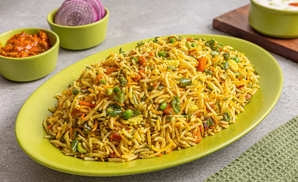 Garden fresh vegetables, Basmati rice, biryani masala.